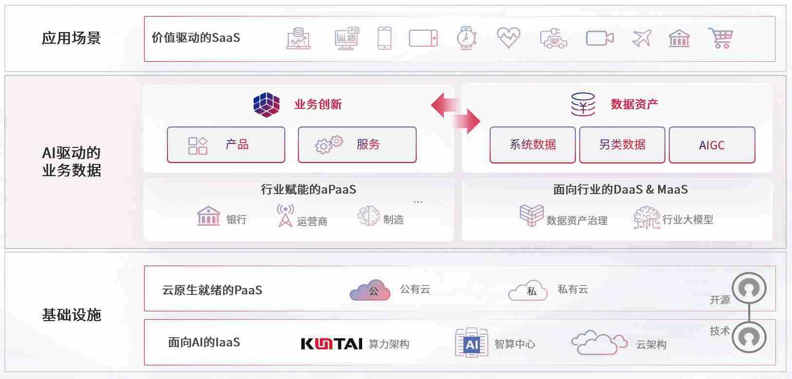 数字时代,,围绕企业数字化转型的关键要素,,老哥网数码开创性的提出数云融合战略和技术体系框架,,着力在云原生、、数字原生、、、、AI原生和信创产业上架构产品和服务能力,,,为处在不同数字化转型阶段的快消零售、、、、汽车、、、金融、、医疗、、政企、、、、教育、、、、运营商等行业客户提供泛在的敏捷IT能力和融合的数据驱动能力,,,构建跨界融合创新的数字业务场景和新业务模式,,,助力企业级客户建立面向未来的核心能力和竞争优势,,,,全面推动社会的数字化、、智能化转型升级。。。