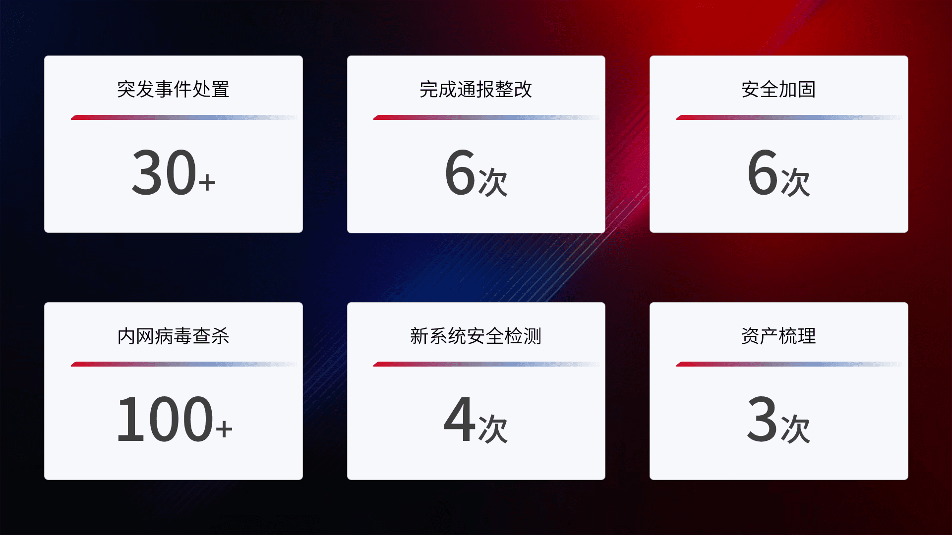 网络安全加固与风险管理:通过技术加固手段,,,,如加强区域隔离,,,,缩减攻击内网横向移动的范围;优化现有网络安全管理制度,,,降低网络威胁暴露面,,,减少被黑客攻击的可能性。。